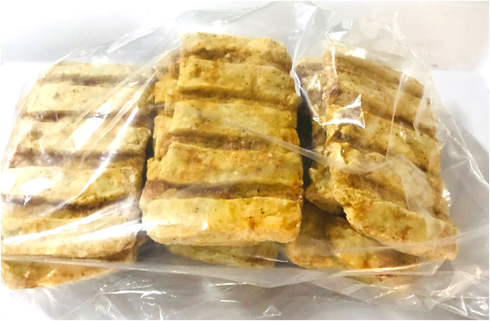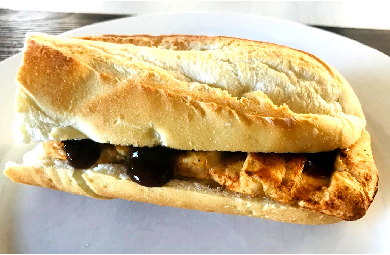 Escalope de poulet entièrement cuit et recouvert d’un glaçage barbecue. Sac de 12 x 100 g.