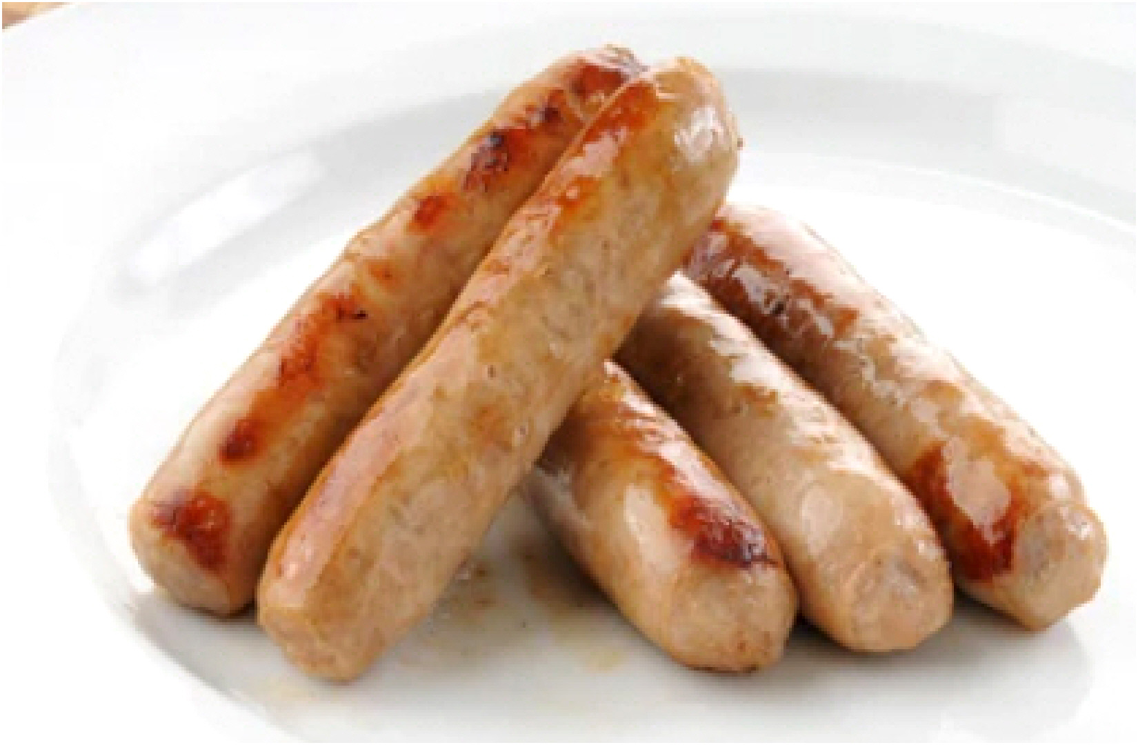 Porc, Eau, Chapelure de blé grillée, Boeuf, Boyau végétal (alginate de sodium), Sel, Gluten de blé, Amidon de blé modifié, Isolat de protéine de blé, Moutarde, Épices, Érythorbate de sodium, Saveur naturelle, Extraits d’épice, Substances laitières. Contient : Blé, Moutarde, Lait.